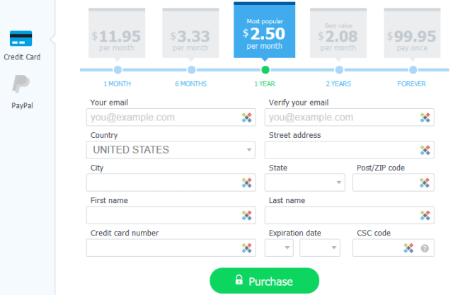 服务器、协议和 IP(共享与专用)取决于您选择的计划。